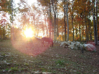 This morning at about 7:30 my friend AK and I headed down to the barn for a morning ride. After getting on Beloved in the indoor, I walked her outside and was hit with the strongest desire to gallop...and not ever stop. :) A little early morning fog was rolling in, the air was cool and crisp and both LoveBug and I were in good moods. I decided to play it safe though, so I didn't run pell mell up the hill. But. I did do a great amount of thinking while I was walking around in the cool Maine air. My thoughts drifted to memories.....some good, some bad.